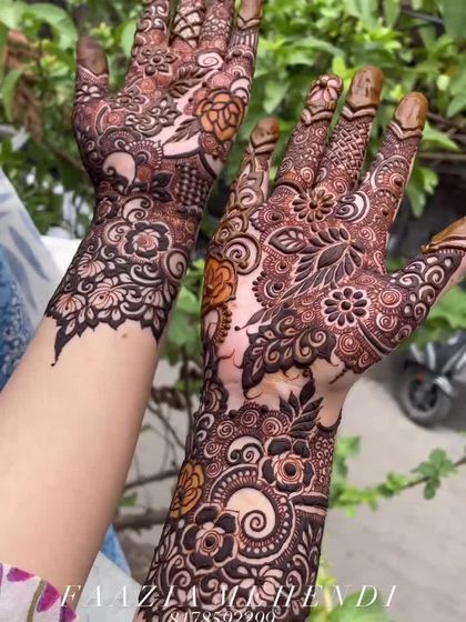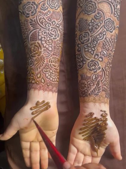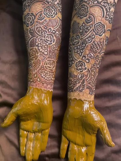 My specialty is creating heavy, intricate bridal mehendi that covers the hands and arms. I work with dense, detailed patterns, ensuring there is minimal empty space for a truly grand and traditional bridal look.