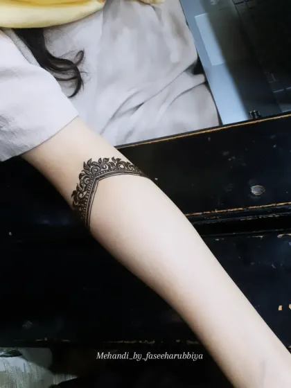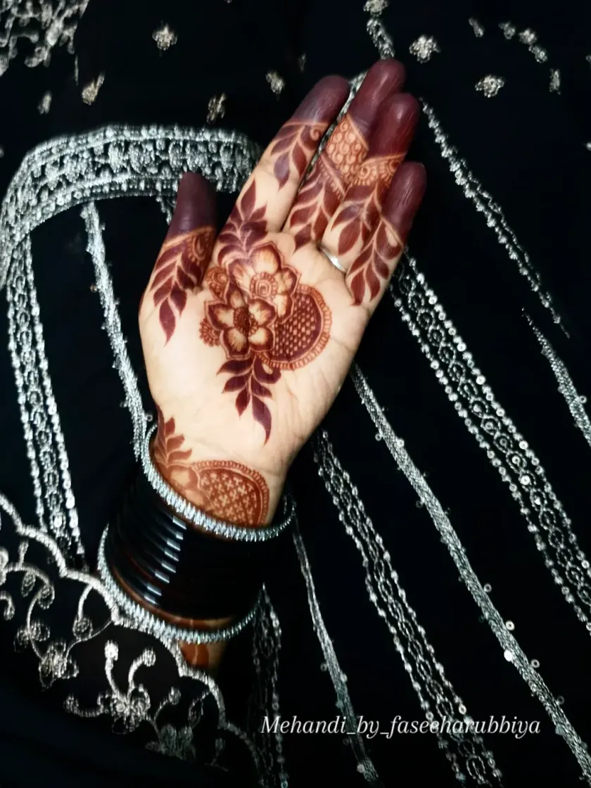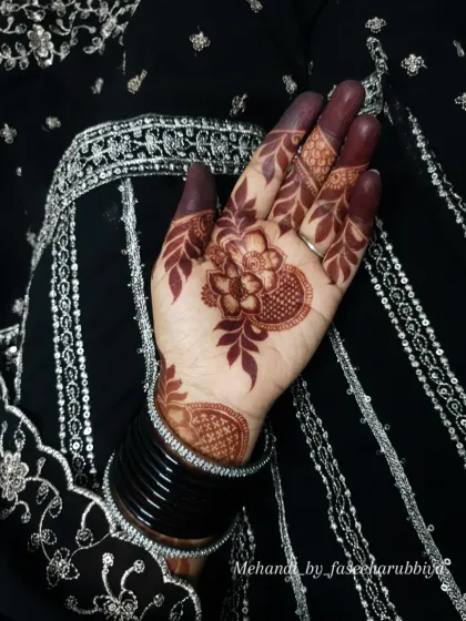 For those who love a standout look, I specialize in bold Arabic and Doha-style mehendi. These designs feature prominent floral and vine patterns with negative space, creating a striking and modern contrast on the skin.