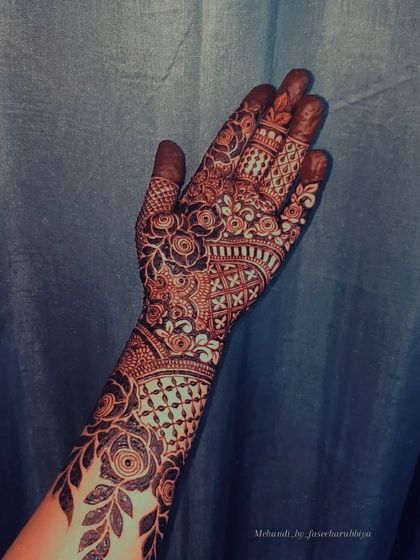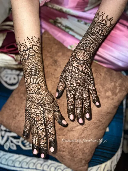 My passion is creating unforgettable bridal mehendi that covers the hands and arms in exquisite detail. I work closely with each bride to incorporate personal elements, ensuring the design is a true reflection of her story, all while using my organic henna for a rich, dark stain on the special day.