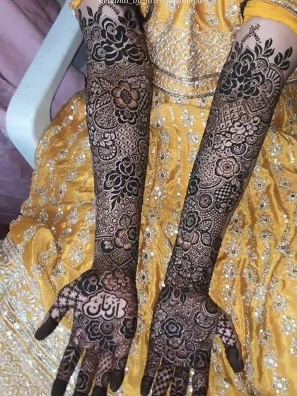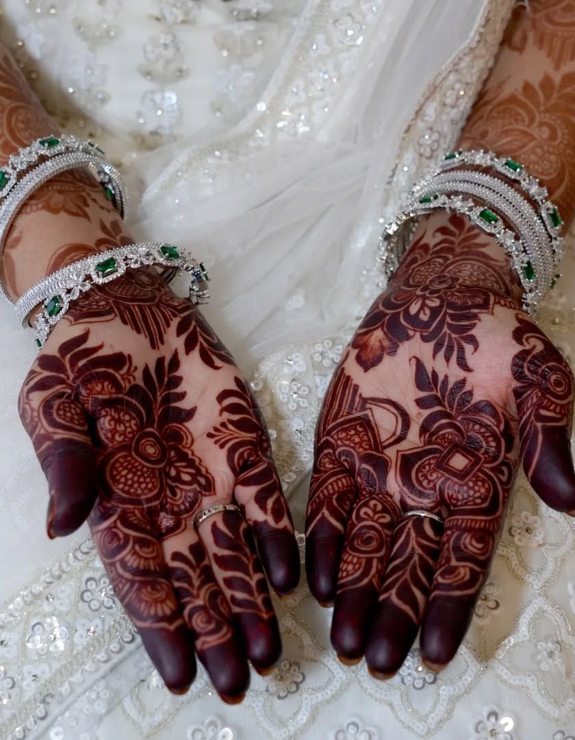 I specialize in creating dense, intricate henna designs that cover the hands and arms, perfect for your wedding or engagement. Each design is unique, blending traditional Indian patterns with personalized elements like names or initials to make your special day unforgettable.