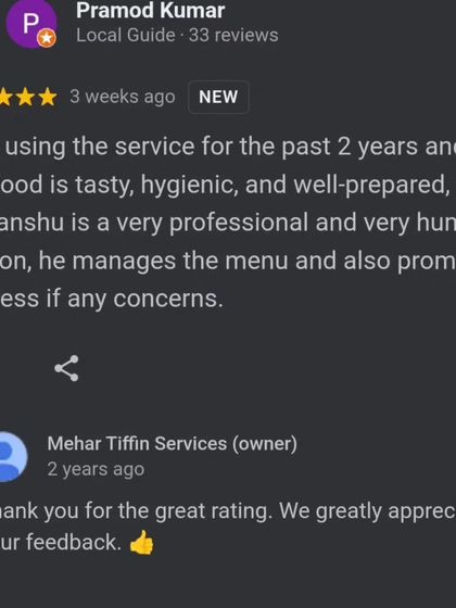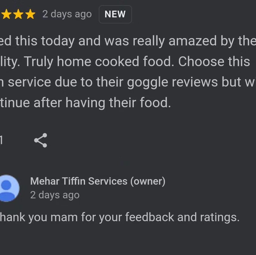 Our customers' feedback is very important to us. We are proud to be known for our food quality, hygiene, and on-time delivery. Here are some of the things our clients have said about our tiffin service.