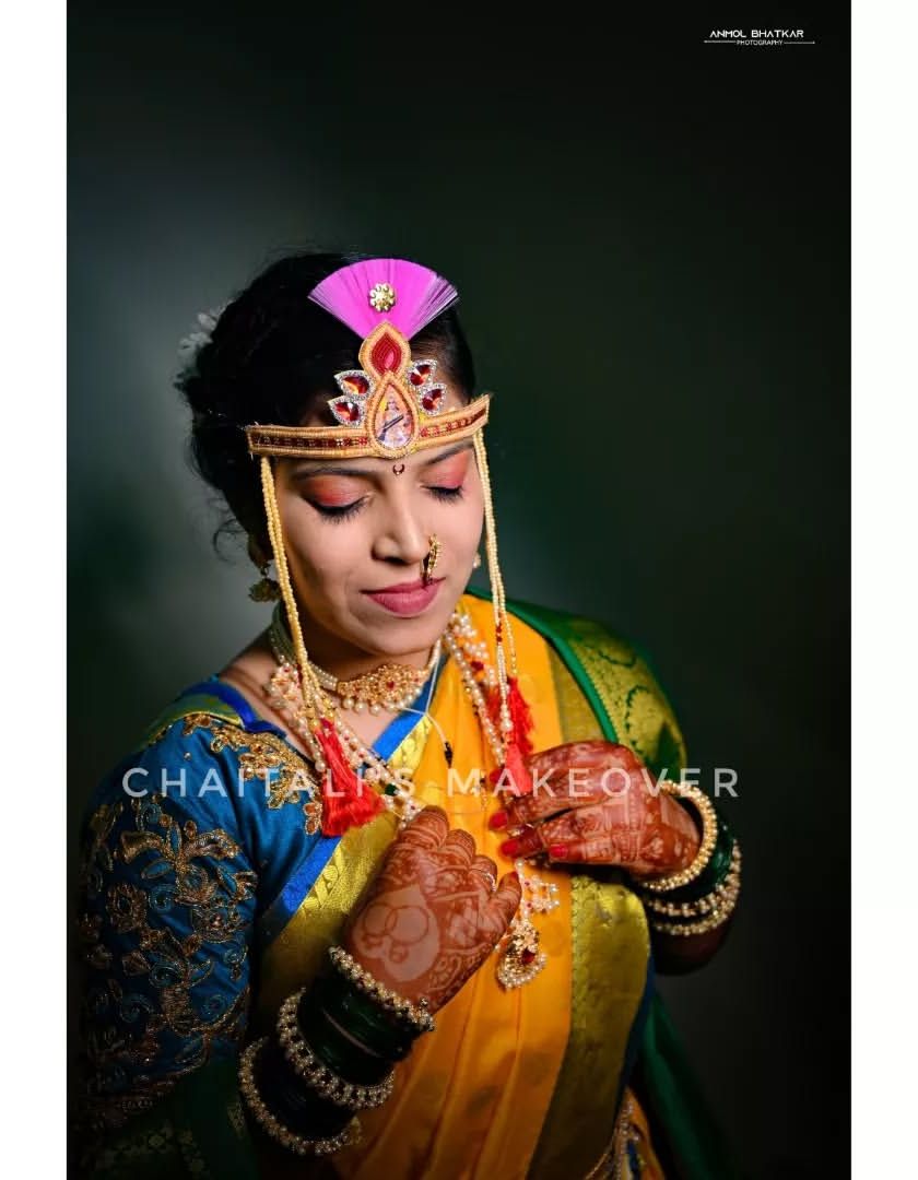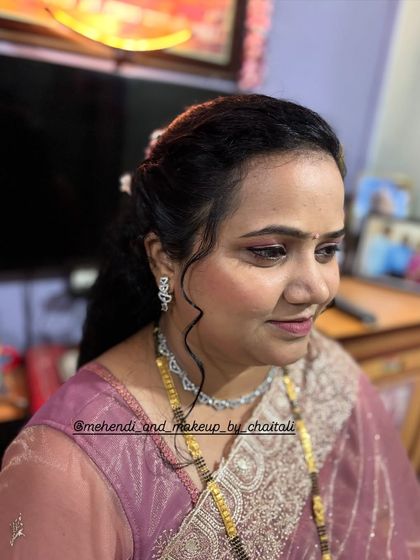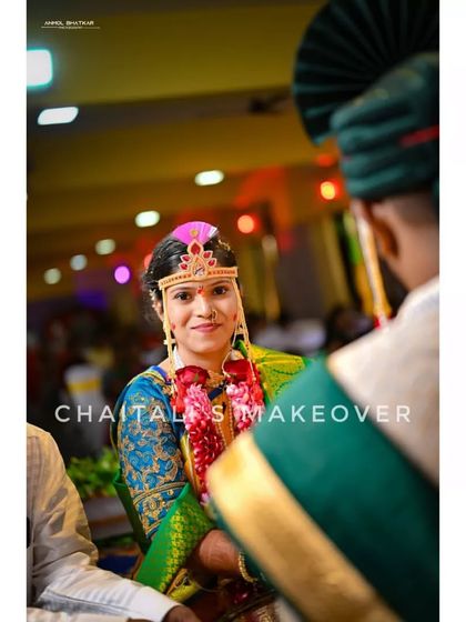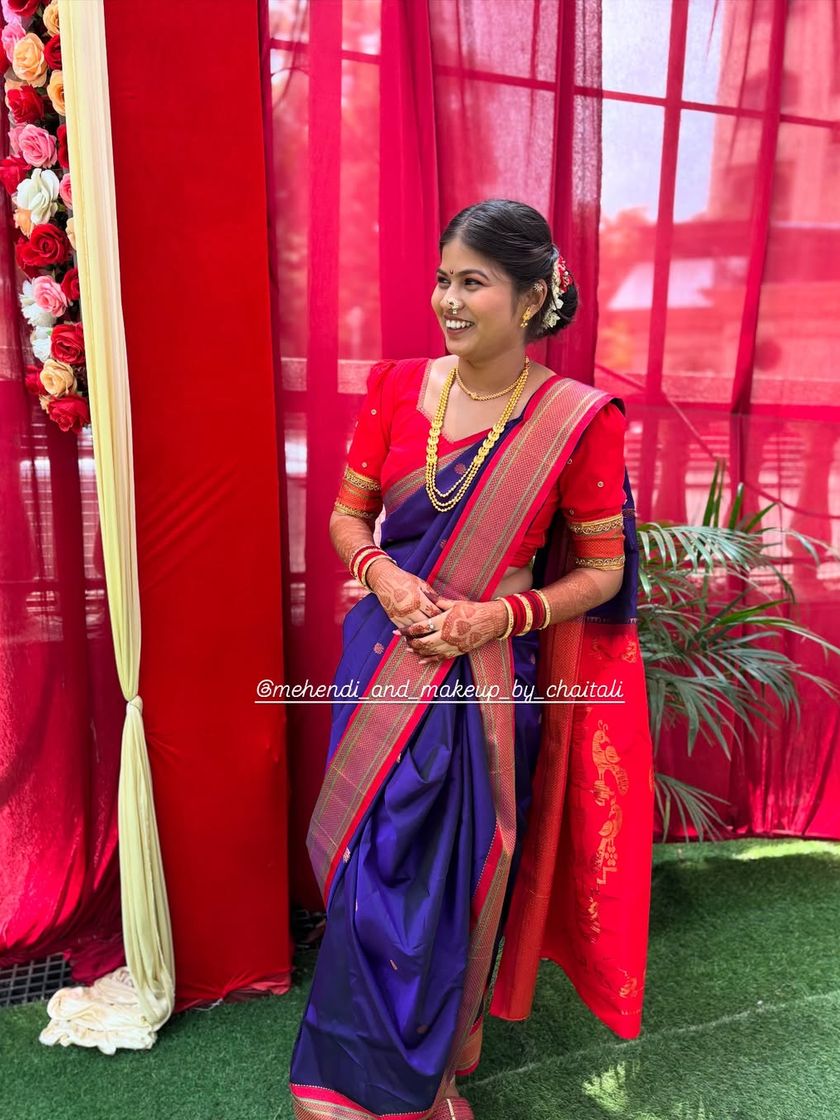 I specialize in creating complete, authentic Maharashtrian bridal looks. This includes my signature natural makeup that enhances your features, traditional hairstyling with details like the 'ambada' bun, and perfect saree draping to make you look and feel like a classic Marathi bride.