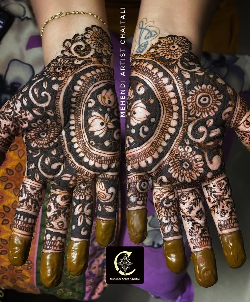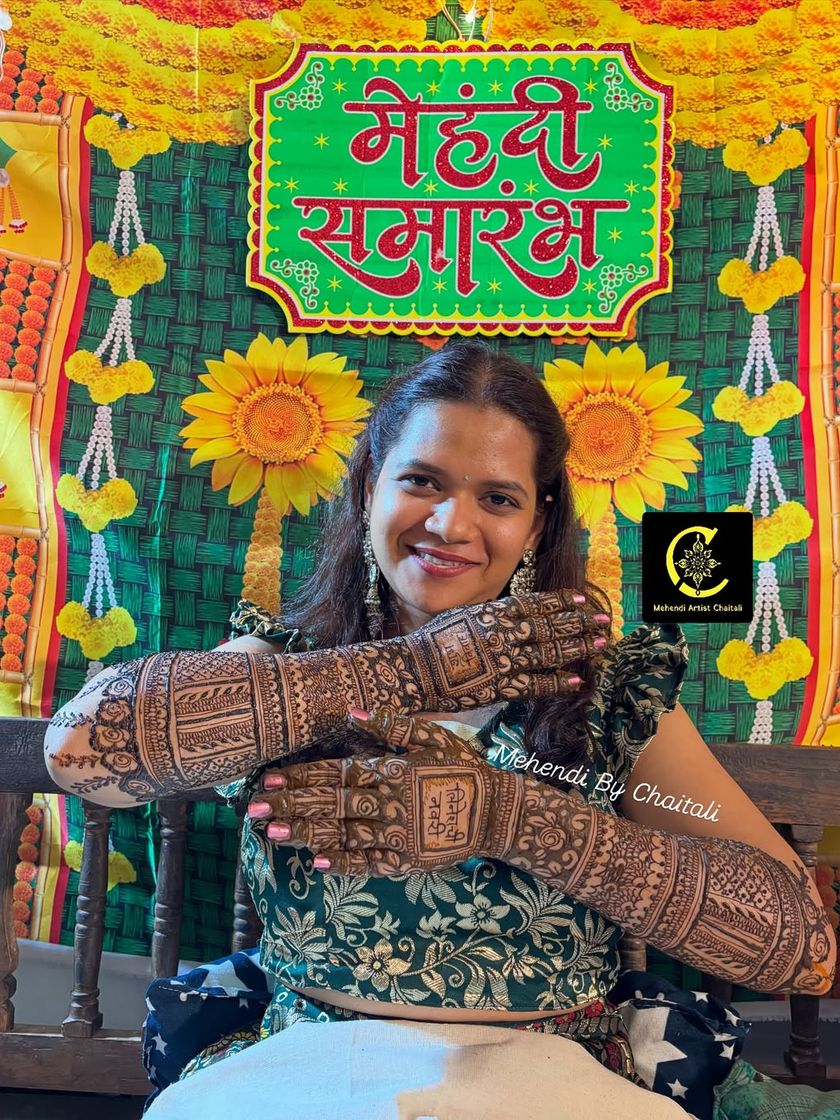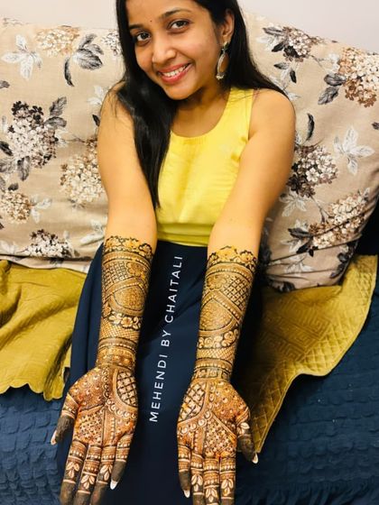 Mehendi is for everyone in the celebration. I offer beautiful designs for the bride's and groom's family and friends, often called 'sider mehendi'. I also create special designs for festivals like Karwa Chauth, Diwali, and Makar Sankranti, ranging from simple Arabic styles to more detailed traditional patterns.