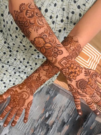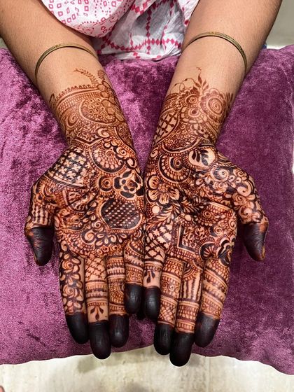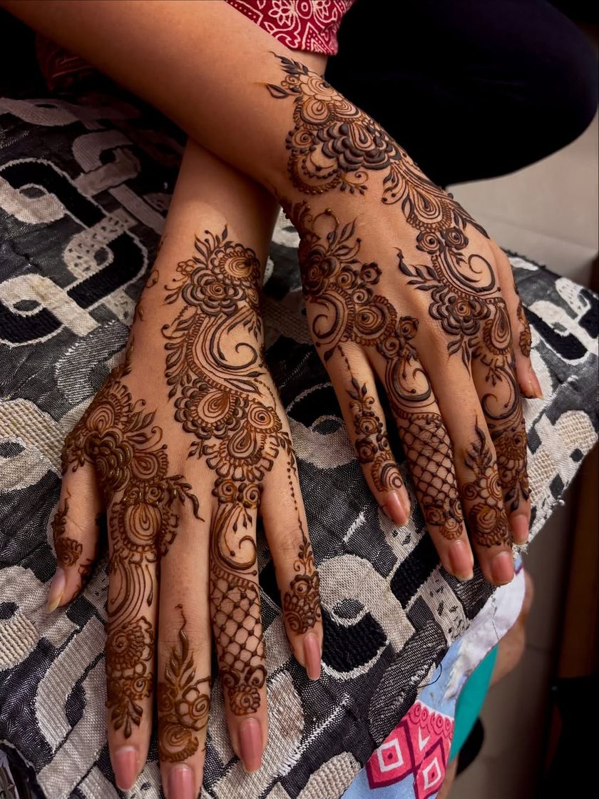 I am versatile in my art and can create a wide variety of styles to suit your taste. Whether you prefer heavy traditional Indian patterns, delicate florals, bold geometric designs, or elegant Pakistani and Arabic styles, I can craft the perfect mehndi for you.