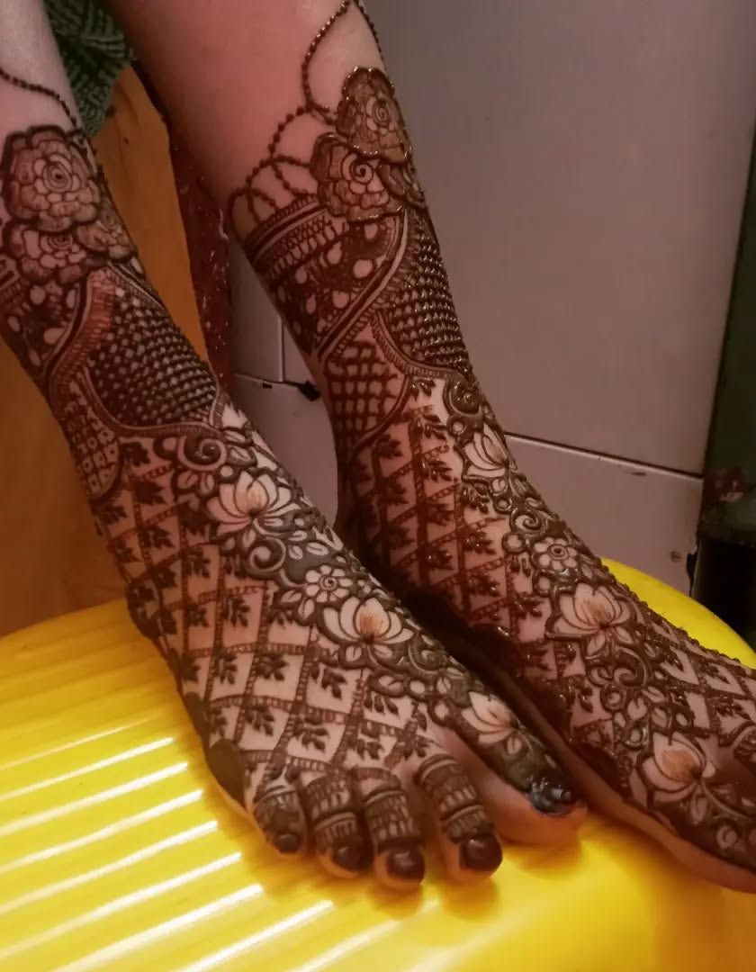 Don't forget your feet! I create beautiful and detailed henna designs for feet and legs, from simple patterns to full coverage bridal styles, ensuring you are adorned from head to toe.