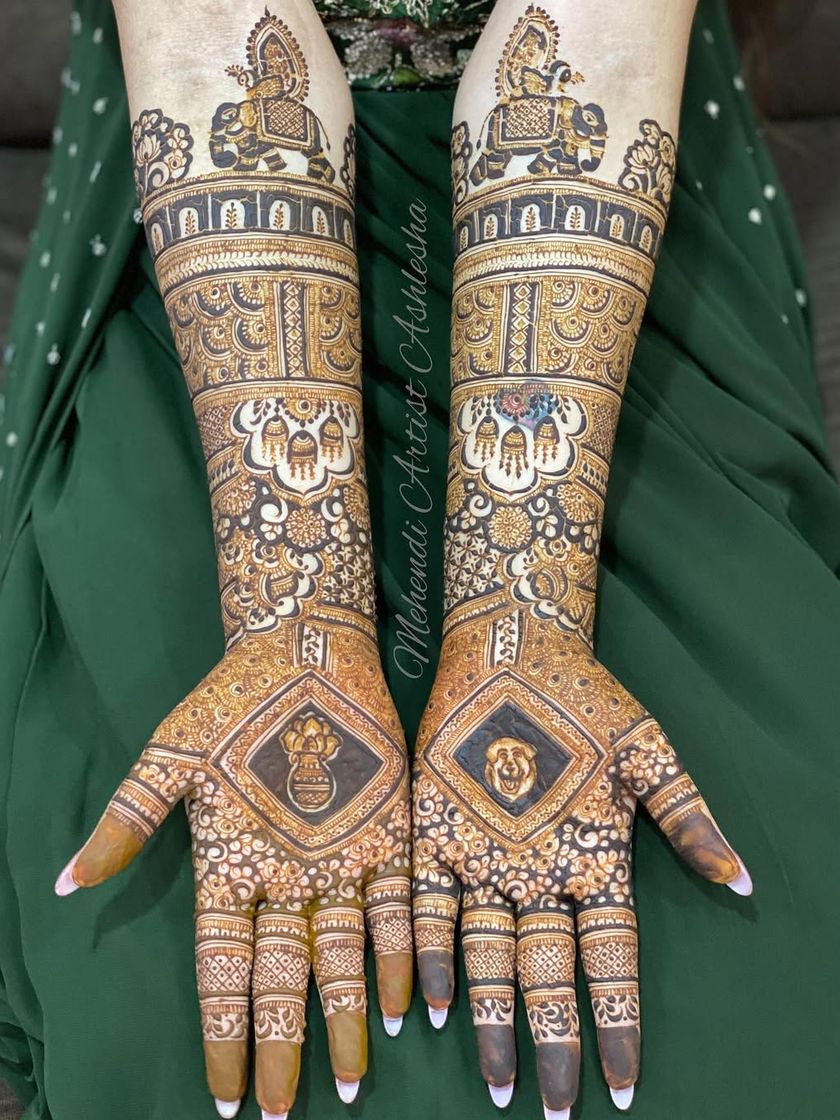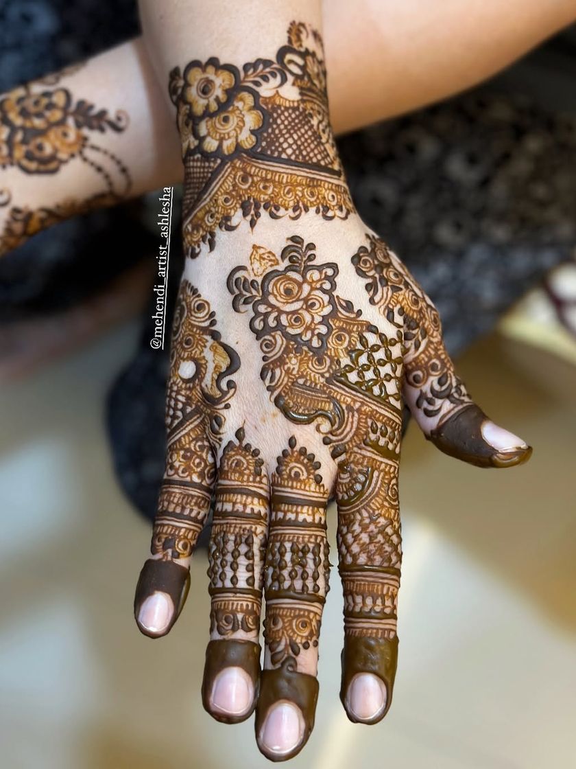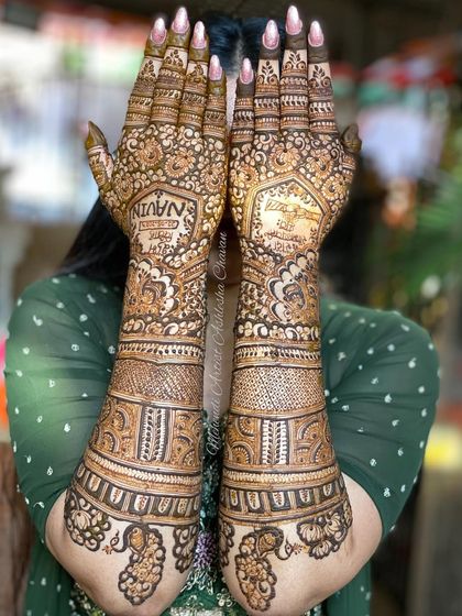 A bride's mehendi is a full work of art, extending from her hands to her feet. This gallery showcases complete bridal sets, emphasizing symmetry, flow, and how to create designs that are beautiful from every angle. My Basic to Bridal course covers everything you need to know to create these stunning, comprehensive looks.