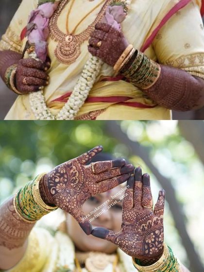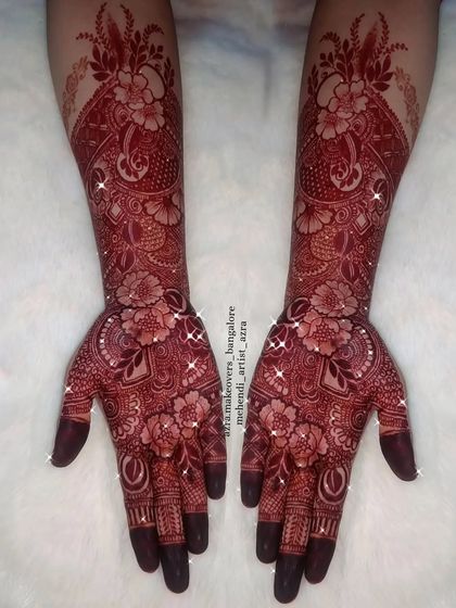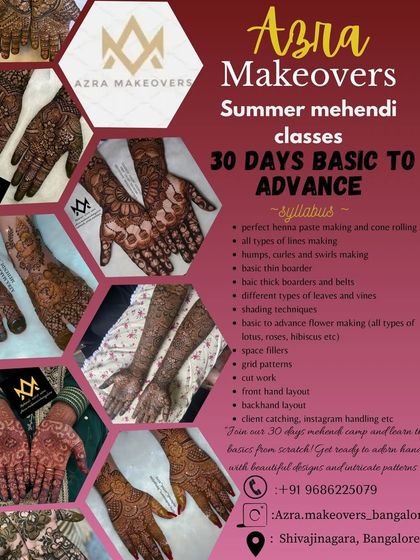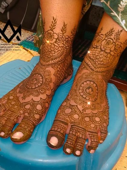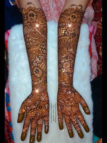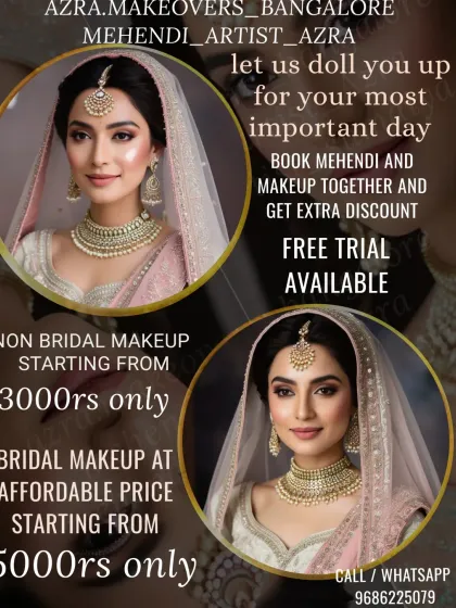 Hey, Azra here. Mehendi and makeup - that’s my jam, right here in Bangalore. I get a kick out of seeing brides light up when I add those little personal touches, like names or dates in their mehendi. Whether you want a full bridal look or just a simple party design, I’m all about making you feel good and looking fab. I love it when my art becomes a part of your memories.