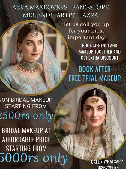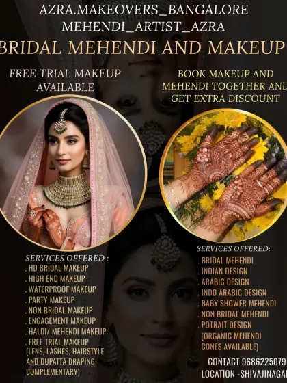 I provide professional mehendi and makeup for bridal and non-bridal events. Get custom designs, affordable combo packages with discounts, and a free makeup trial.
