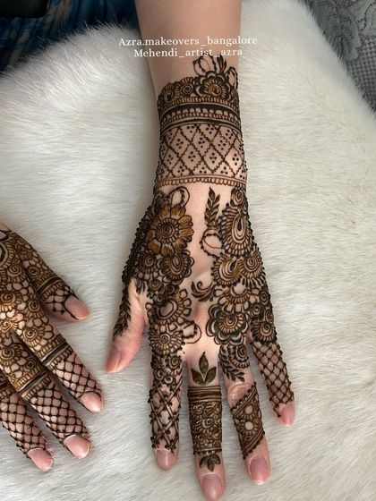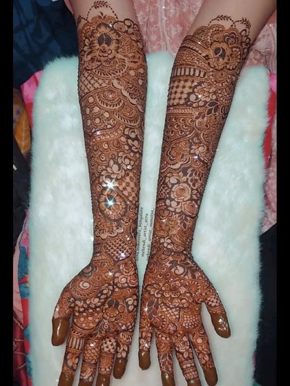 I specialize in full bridal mehendi, creating dense and intricate designs that cover the hands, arms, and feet. My work includes traditional Indian patterns, detailed floral work, and symmetrical layouts for a complete bridal look.