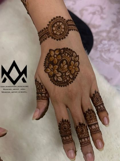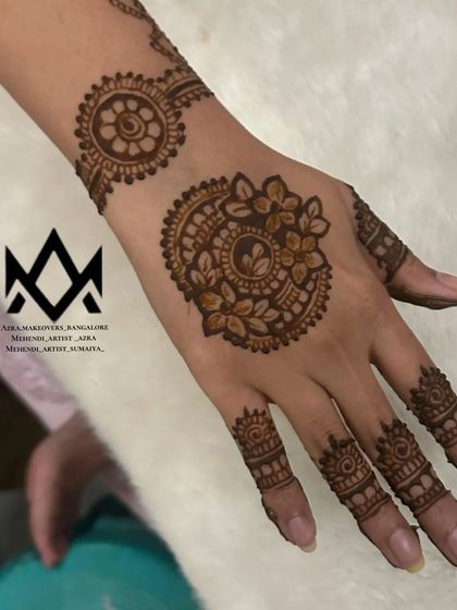Hey, Azra here. Mehendi and makeup - that’s my jam, right here in Bangalore. I get a kick out of seeing brides light up when I add those little personal touches, like names or dates in their mehendi. Whether you want a full bridal look or just a simple party design, I’m all about making you feel good and looking fab. I love it when my art becomes a part of your memories.