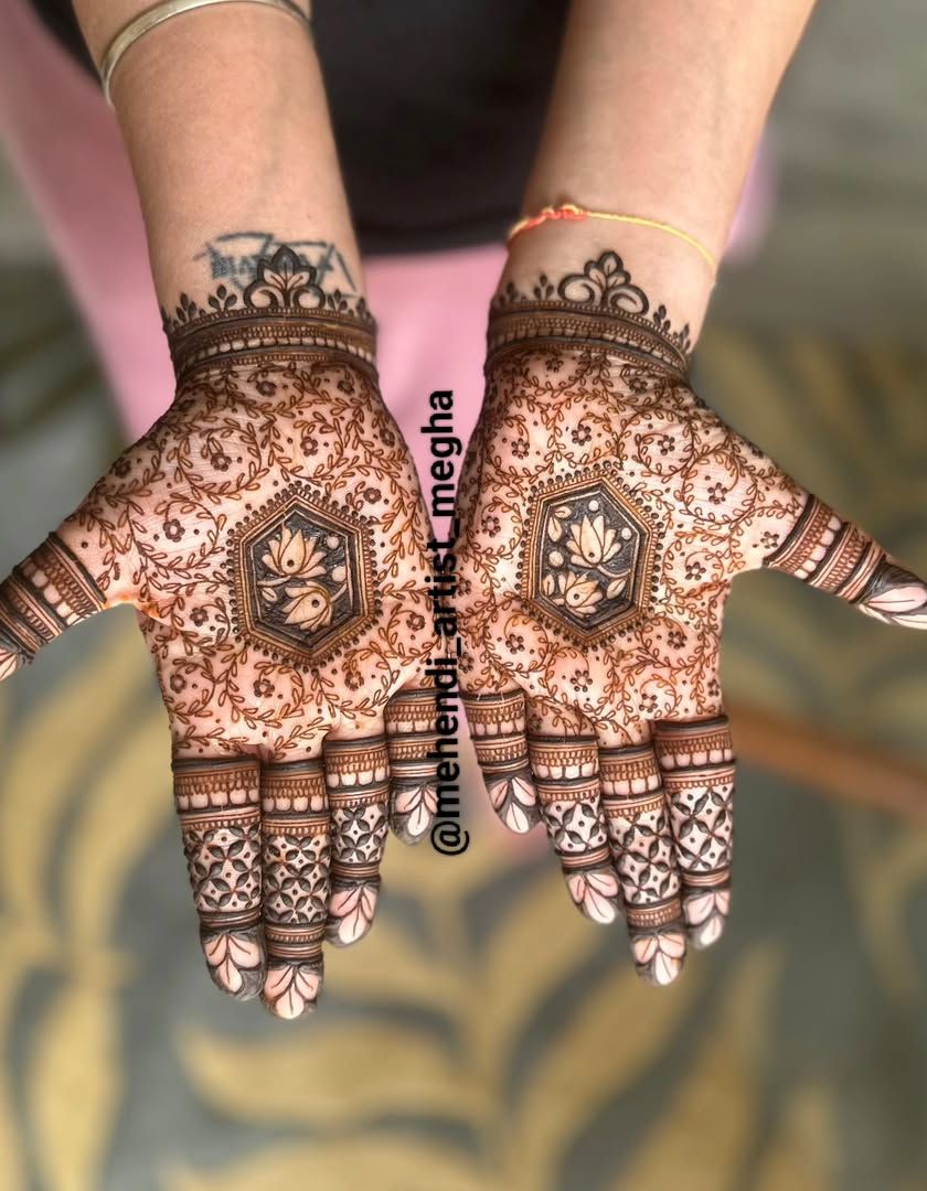 For those who prefer a contemporary or understated look, I offer a range of modern and minimalist designs. This includes elegant mandalas, chic jewellery-inspired patterns, stylish floral arrangements, and clean geometric shapes for a touch of henna magic.