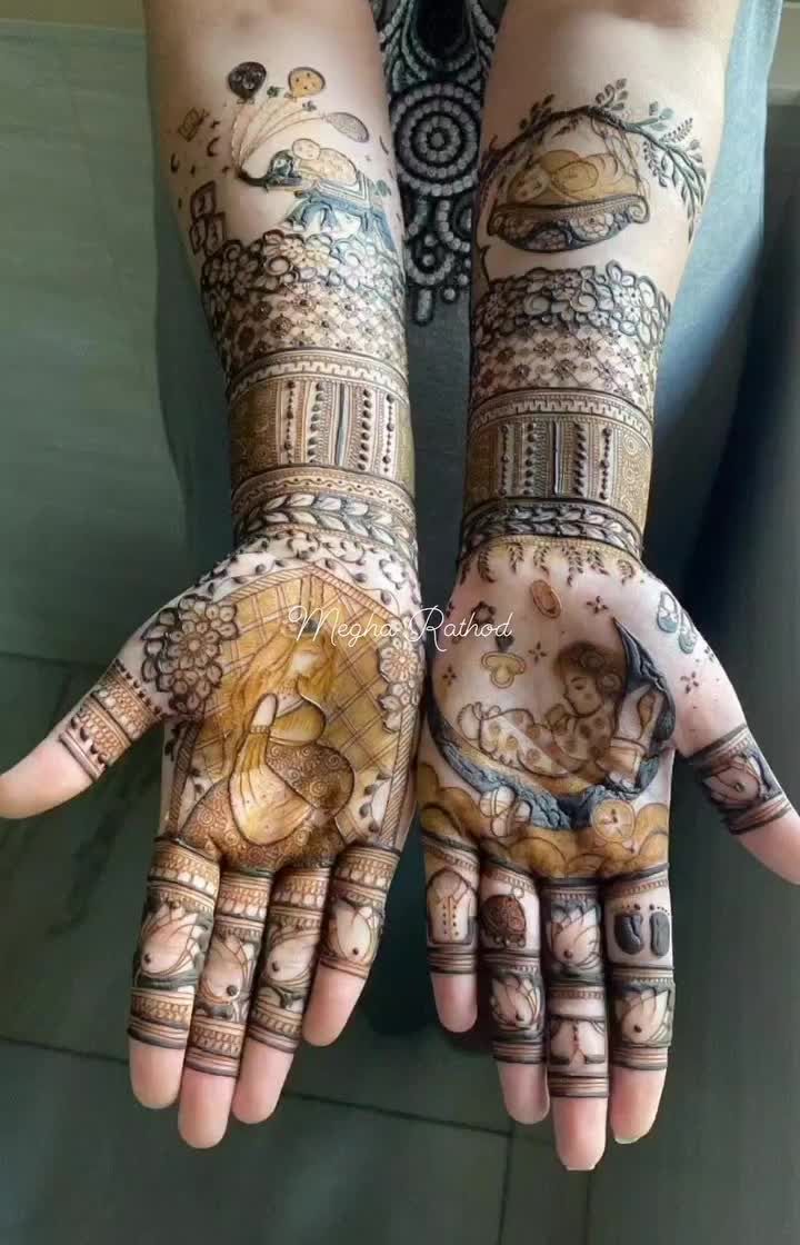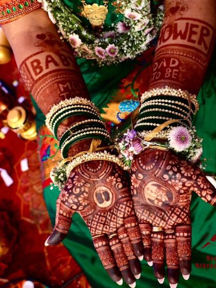 Celebrate the beautiful journey of motherhood with a story told in henna. From tiny baby feet and cradles to serene moon scenes, I create custom mehendi designs that capture the joy and anticipation of your baby shower.