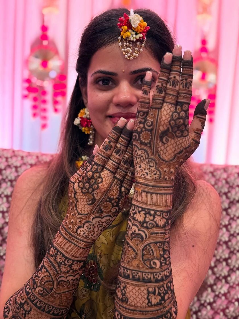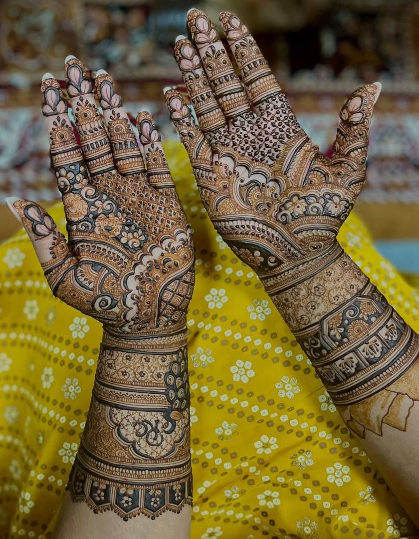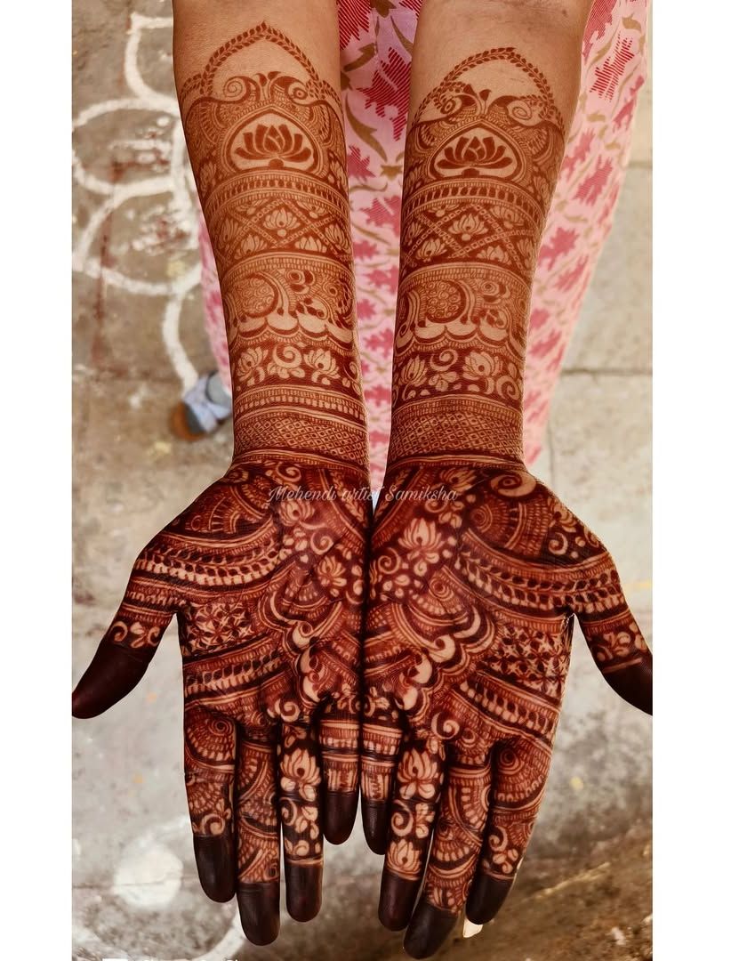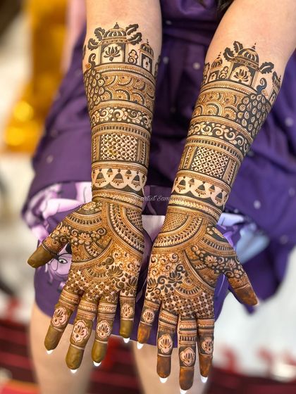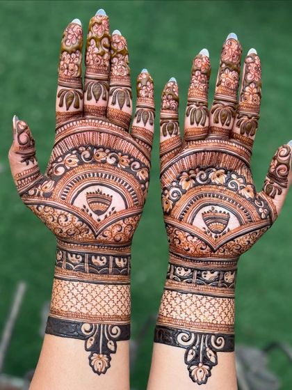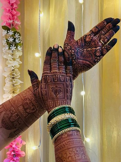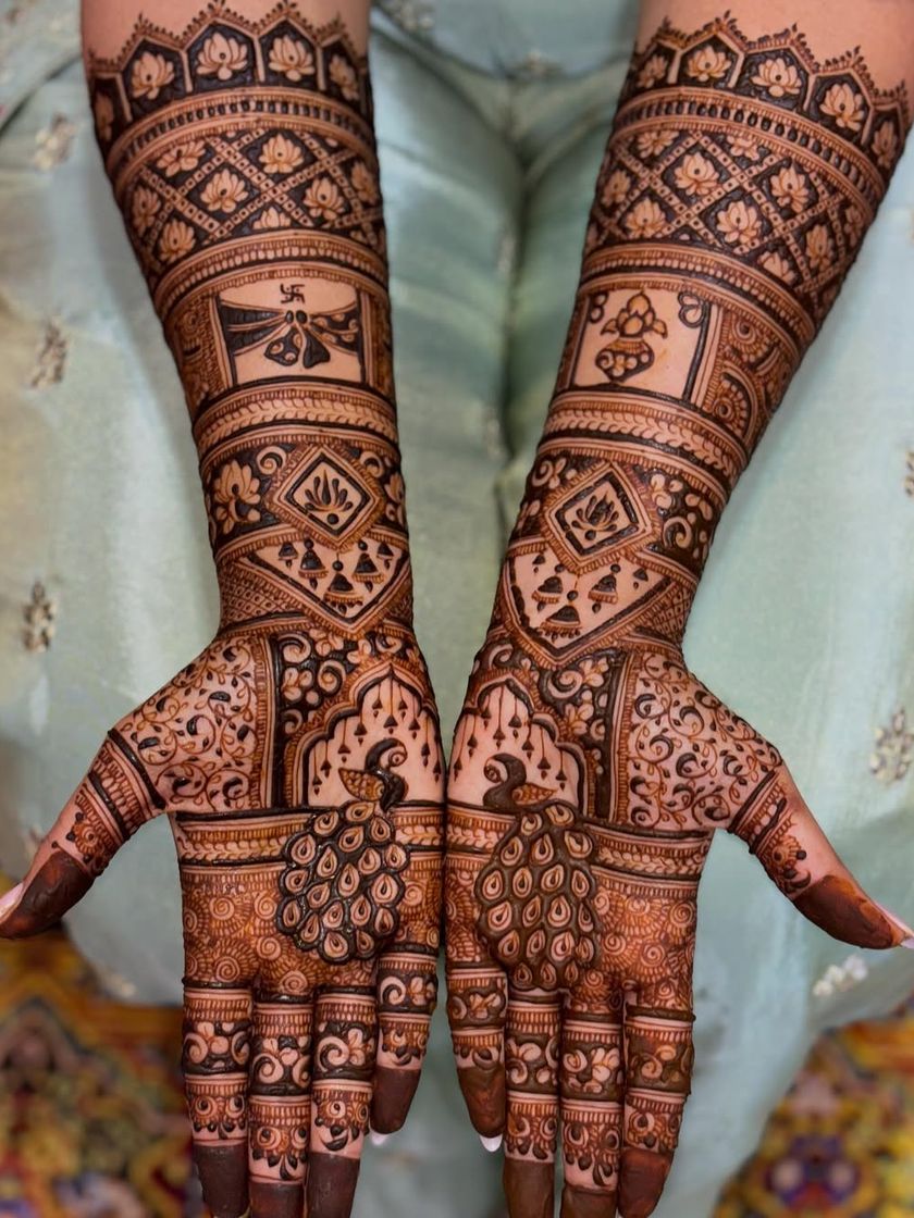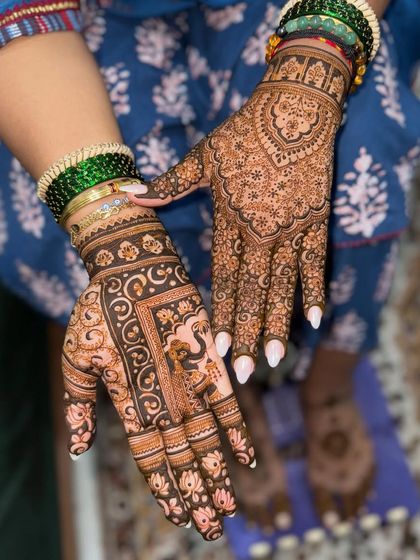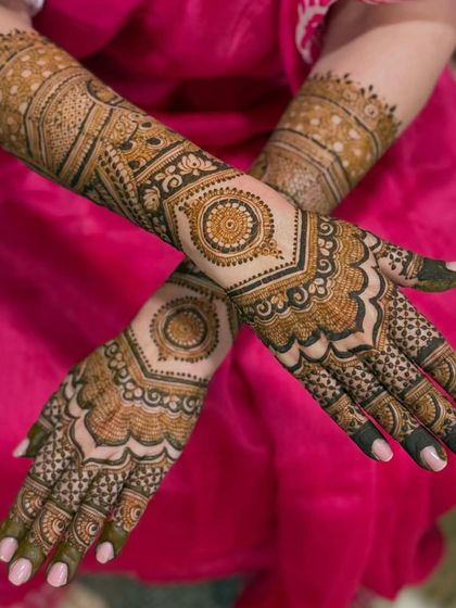 For the traditional bride who loves full, elaborate designs. I specialize in creating dense, symmetrical patterns that cover the hands and arms with classic motifs.