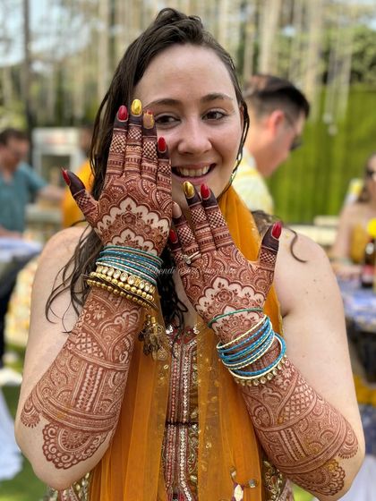 Your story, your mehendi. I love creating unique designs that include personal details like your pet, city skylines, special dates, or even your favorite superhero.