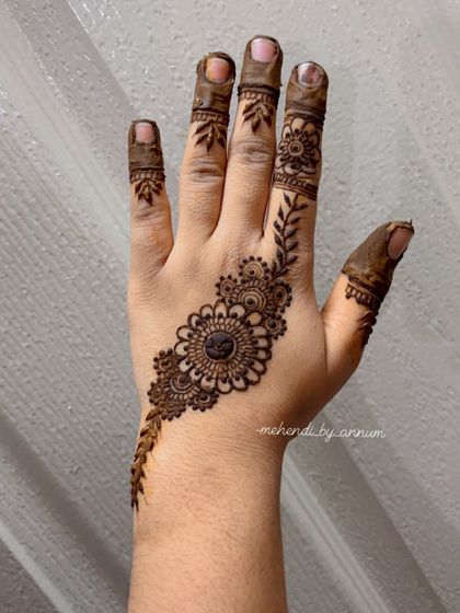 As a self-taught artist, I create intricate floral and Arabic mehendi designs from the heart. I use only natural henna for all your occasions, because for me, mehendi is 'Meem se mohabbat' (love).