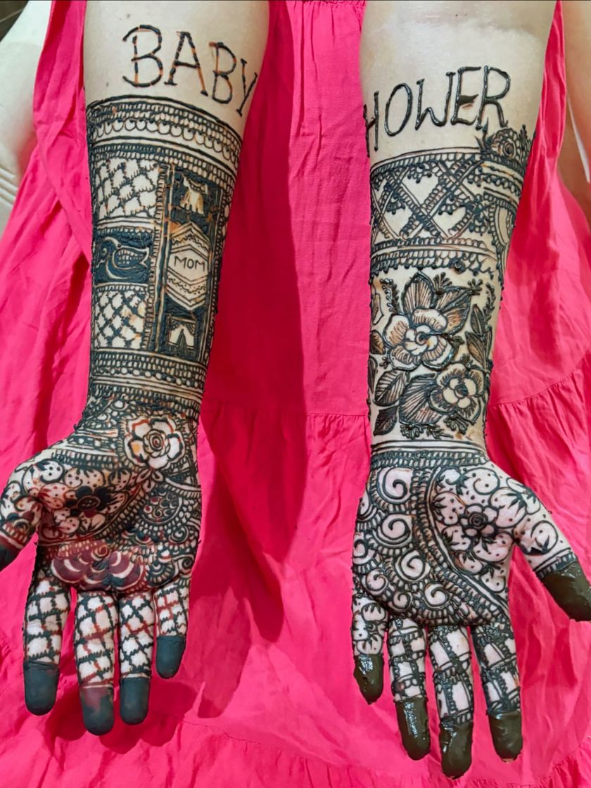 I create special designs for this beautiful journey, incorporating names, dates, or cute baby motifs. Whether for hands or feet, I love making your Godh Bharai ceremony extra memorable with personalized henna art.