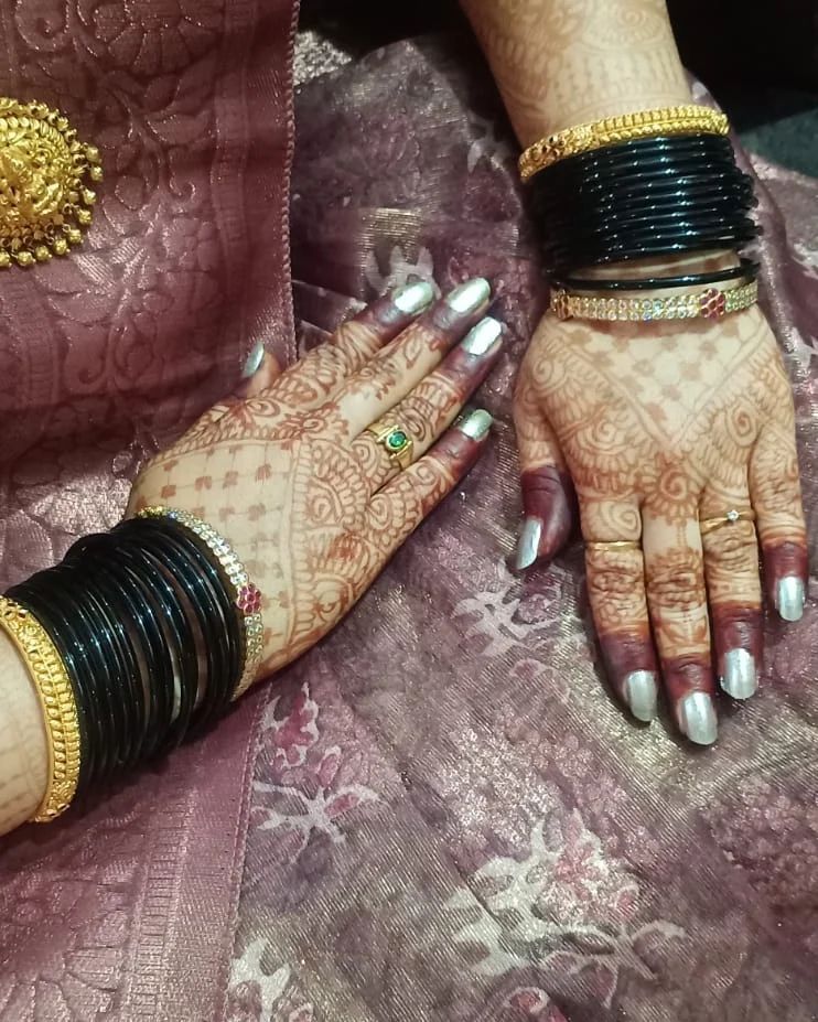 The best part of getting mehendi is seeing the beautiful color after the paste comes off. Because I make my own henna cones with 100% natural powder and essential oils, you get a deep, dark, and long-lasting stain without any harmful chemicals. My clients love the safe, beautiful, and reddish-brown color.