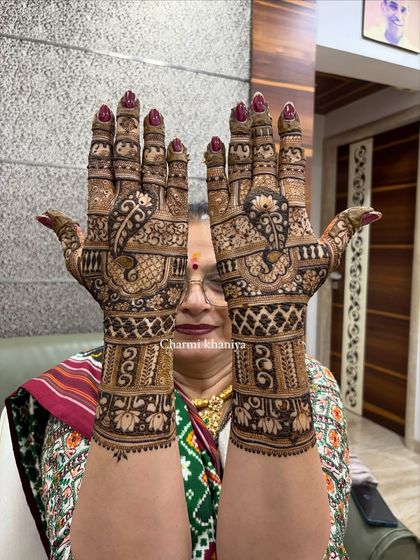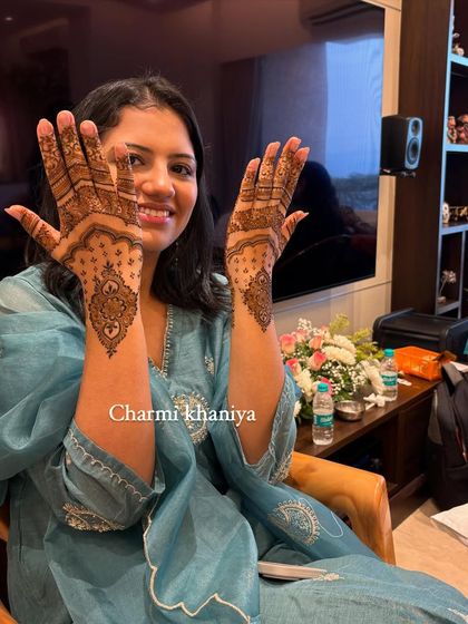 Hey, I’m Charmi - full-time #HennaLover from Mumbai! Mehendi is my vibe, my art, and my way of adding happiness to your big days. I’ve painted hands for weddings, festivals, even travelled outside Mumbai just for mehendi. For me, it’s not just a ritual, it’s pure celebration. I love seeing my designs become memories. Handcrafted happiness, that’s what you get from me.
