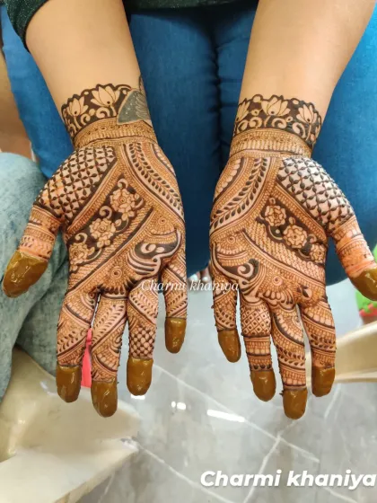 Hey, I’m Charmi - full-time #HennaLover from Mumbai! Mehendi is my vibe, my art, and my way of adding happiness to your big days. I’ve painted hands for weddings, festivals, even travelled outside Mumbai just for mehendi. For me, it’s not just a ritual, it’s pure celebration. I love seeing my designs become memories. Handcrafted happiness, that’s what you get from me.