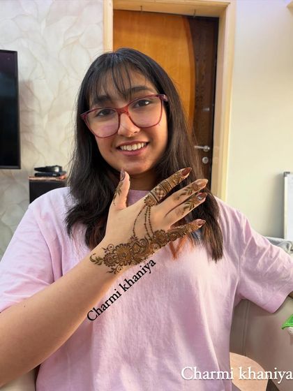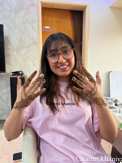 Hey, I’m Charmi - full-time #HennaLover from Mumbai! Mehendi is my vibe, my art, and my way of adding happiness to your big days. I’ve painted hands for weddings, festivals, even travelled outside Mumbai just for mehendi. For me, it’s not just a ritual, it’s pure celebration. I love seeing my designs become memories. Handcrafted happiness, that’s what you get from me.