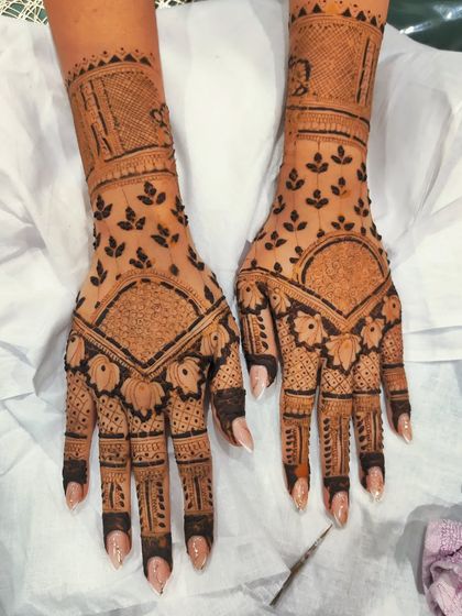 I am a professional mehendi artist with 7 years of experience specializing in intricate and detailed work. I create custom designs for all occasions, including bridal portraits, story mehendi, and festive art.