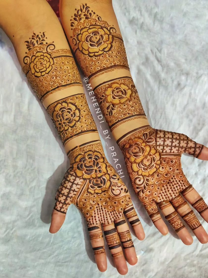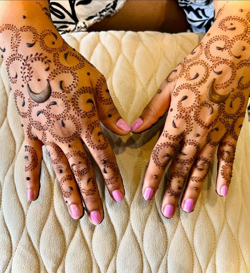 For those who love a contemporary twist, I specialize in modern henna styles. This includes popular Indo-Western, Arabic, and Dubai designs, often featuring bold florals, graceful vines, and elegant, spaced-out patterns.