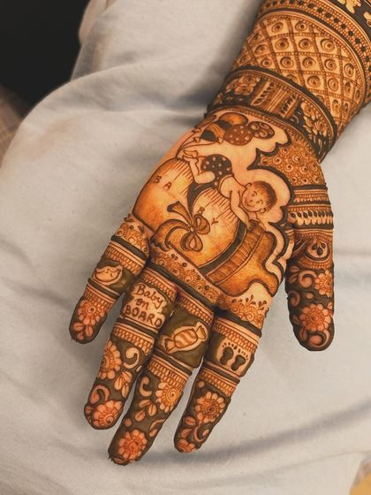 I create special mehndi for moms-to-be, turning your joy into beautiful art. I love adding personal touches like baby footprints, rattles, or even a "Mom to be" message to make your baby shower truly memorable.