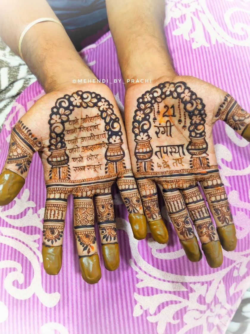 I have experience creating meaningful designs for religious festivals and Jain ceremonies. I can incorporate sacred texts, mantras, and traditional symbols to ensure your mehndi is both beautiful and spiritually significant.