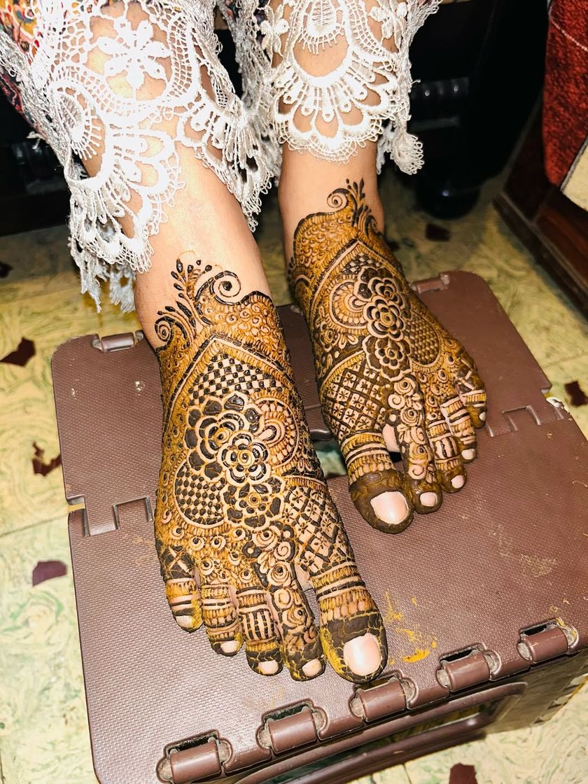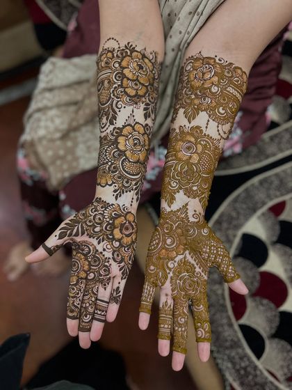 My specialty is complete bridal mehendi that adorns you from your fingertips to your elbows. These designs are incredibly detailed and created to make you feel like the most beautiful bride on your big day. Each design is a unique story, filled with traditional motifs and personal touches.