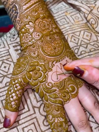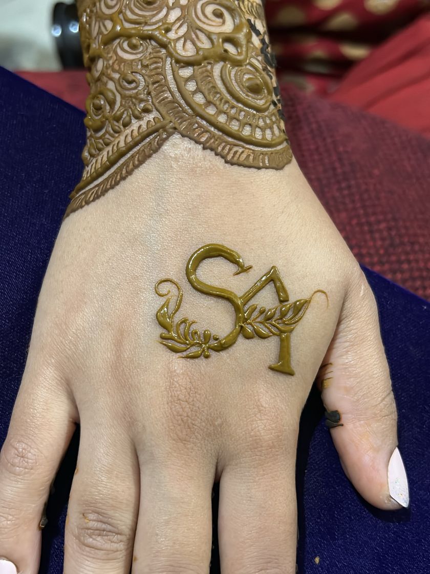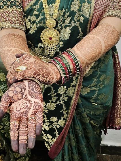 I love making your mehendi truly yours by adding personal touches. I can skillfully hide your 'sajna ka naam' (groom's name) or initials within the intricate patterns. I also specialize in creating beautiful figures like bride and groom portraits, elephants, and peacocks to tell your unique story.