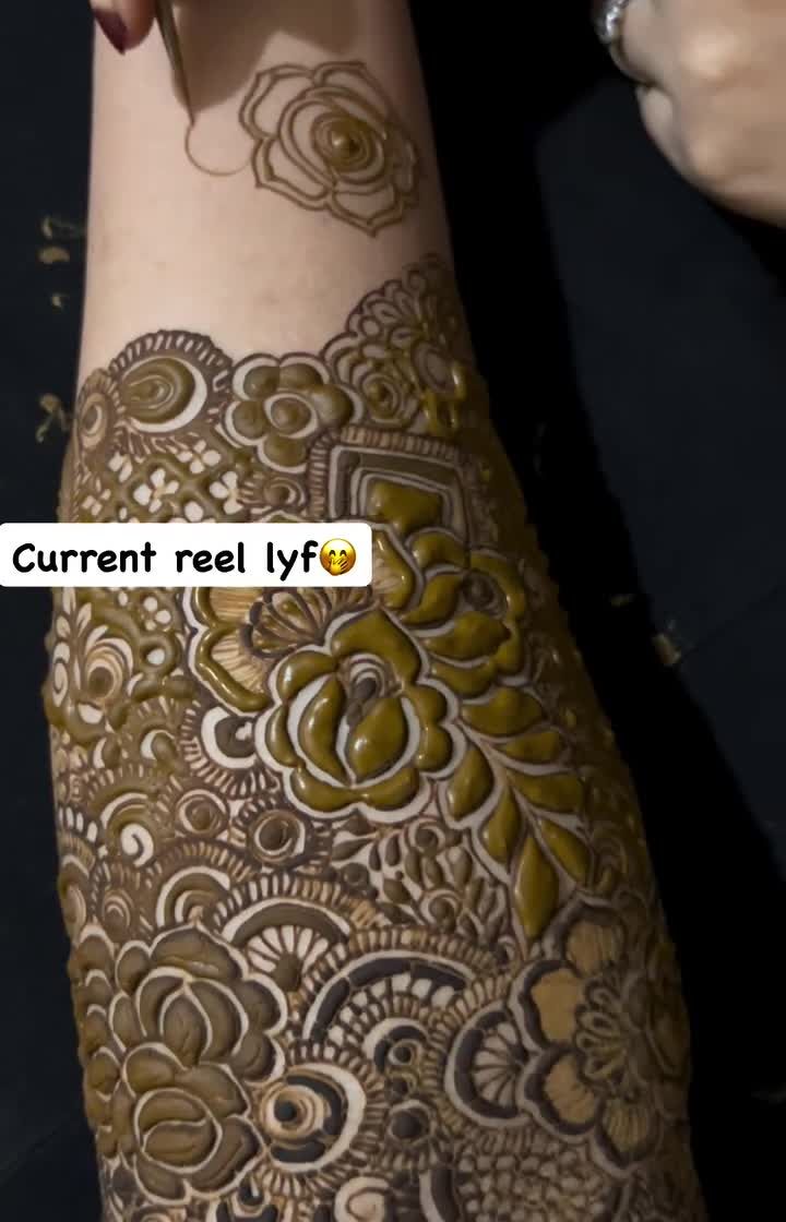 For a modern and chic look, I offer elegant floral patterns and bold Dubai-inspired designs. These styles often use negative space to create a striking contrast, focusing on beautiful flowers, leaves, and flowing vines. They are perfect for engagements, parties, or for the contemporary bride.