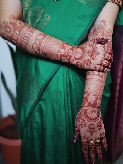 With 14 years of experience, I see mehendi as architecture on skin, specializing in personalized bridal designs. From traditional motifs to your unique story, I use only natural, chemical-free henna to bring your vision to life.