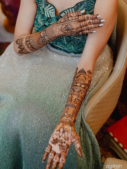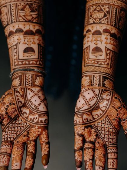 Traditional Motifs & Grand Designs - From doli baraat to divine deities and peacocks, I create intricate traditional mehendi that stands out.