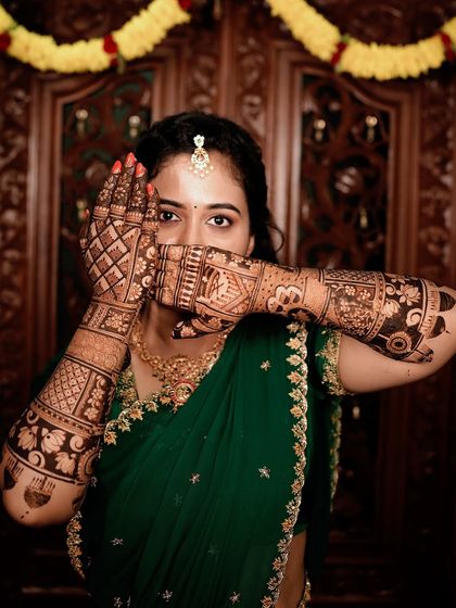 Hey, Neetha here. ನಾನು ಬ್ರೈಡಲ್ ಮೆಹಂದಿ ಆರ್ಟಿಸ್ಟ್ (I’m a bridal mehendi artist) from namma Bengaluru. Been at this for 14 years, still get goosebumps when I start a new design. The mehendi function? Love it. Family, songs, laughter, all that energy. Every bride I meet is a superstar to me, whether she’s famous or just super excited. My goal? Make her story shine on her hands. When my mehendi adds that extra glow, I feel proud.