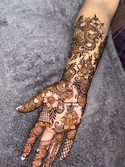 We create custom mehendi designs for brides, guests, and events, offer bulk bookings, and travel worldwide for destination weddings.