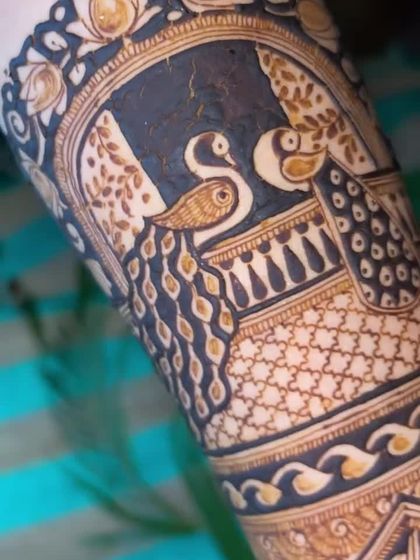 I design bridal mehendi that’s personalised to your story, using only natural henna and including custom elements like portraits, initials, or blending with tattoos.