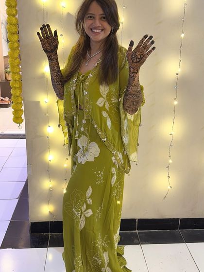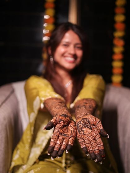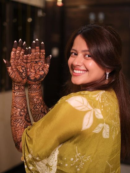 Mehendi, for me, isn’t just a design – it’s pure emotion. I see hands as storytellers, and I get to draw those stories, whether it’s a bride’s first chapter or a baby’s Mundan. I love mixing tradition with personal moments, like sketching a couple’s bike ride or their 'Aai Baba' (mom and dad) right into the mehendi. I put my heart, energy, and endless effort into every hand. This is what I live for.