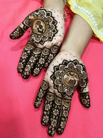 Your mehendi can tell a personal story. I love incorporating meaningful symbols, from spiritual motifs like the Mahadev Trishul to festive designs for occasions like Karwa Chauth, creating art that is unique to you.