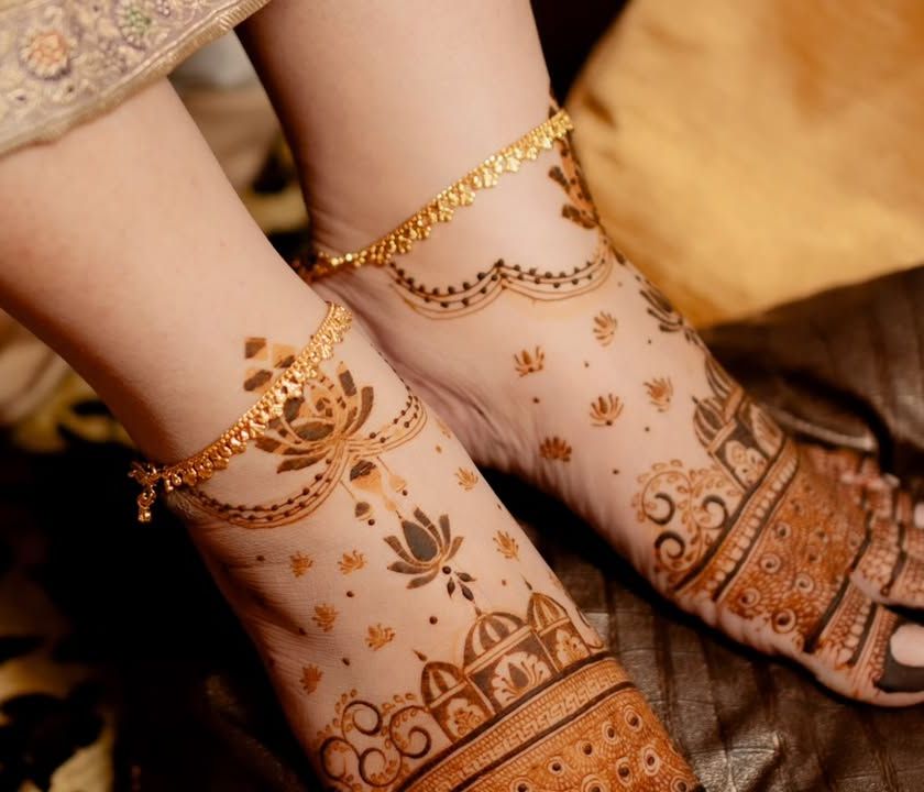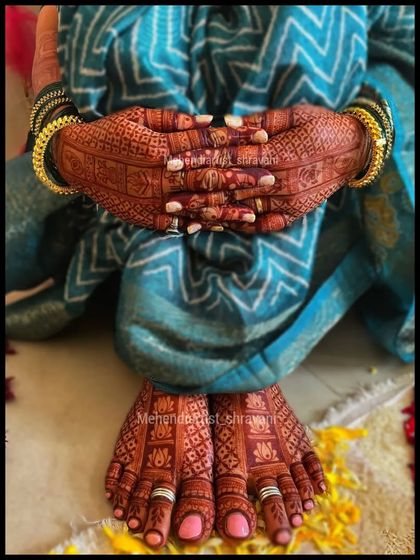 Complete your festive or bridal look with beautiful mehendi for your feet. I design everything from simple, elegant patterns that trace the ankle to full-coverage designs that adorn the entire foot. Popular motifs include paisleys, florals, and architectural domes.