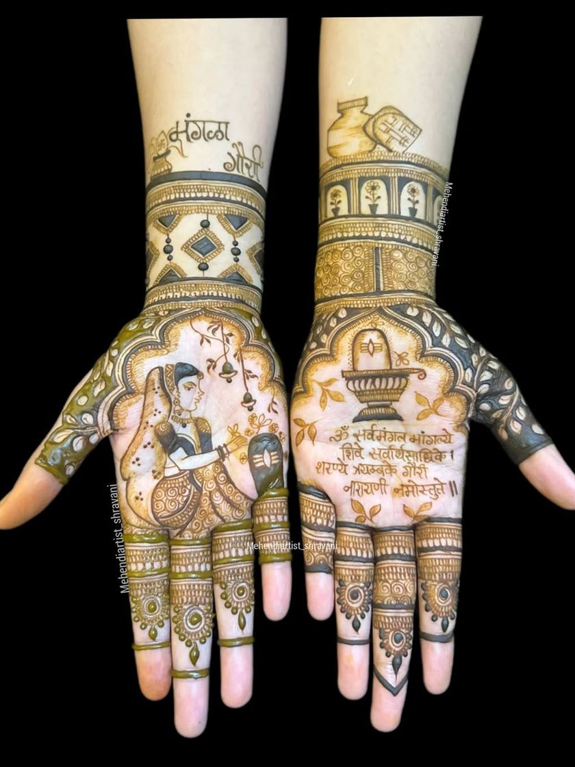 I create special mehendi designs for all your celebrations, including festivals like Teej, Karva Chauth, and Mangla Gauri. Whether you want a traditional mandala or a narrative design that tells the story of the festival, I can create the perfect art for the occasion.
