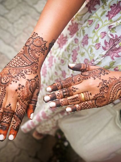 This is the first look at my work. I've selected a few of my favorite designs that showcase the range of what I can do, from intricate bridal henna that tells a story to the beautiful, rich stain you can expect from my 100% organic paste.