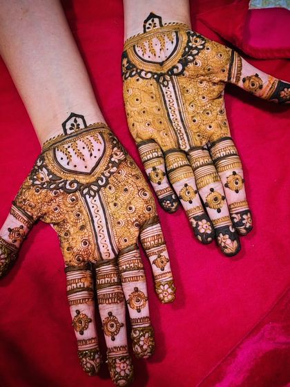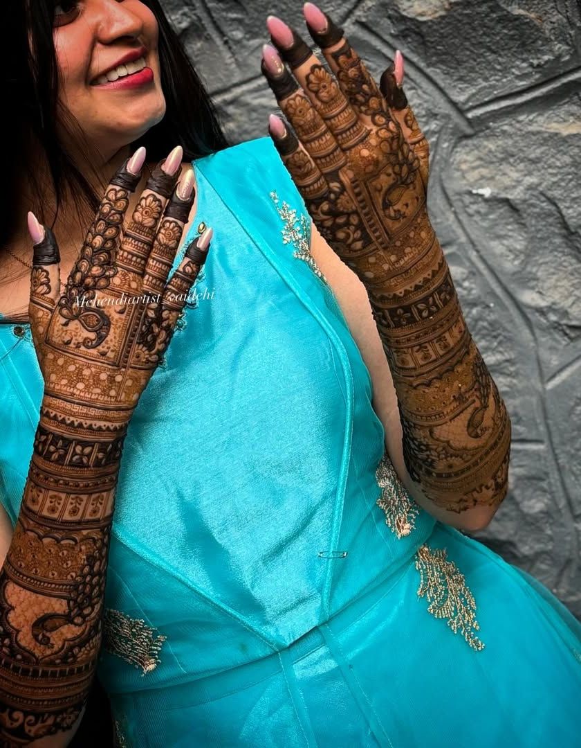 For your most special day, I create elaborate designs that cover the hands and arms. We can incorporate traditional motifs like paisleys and peacocks, geometric patterns, and elements that tell your personal story. I take pride in creating a unique design for every bride.