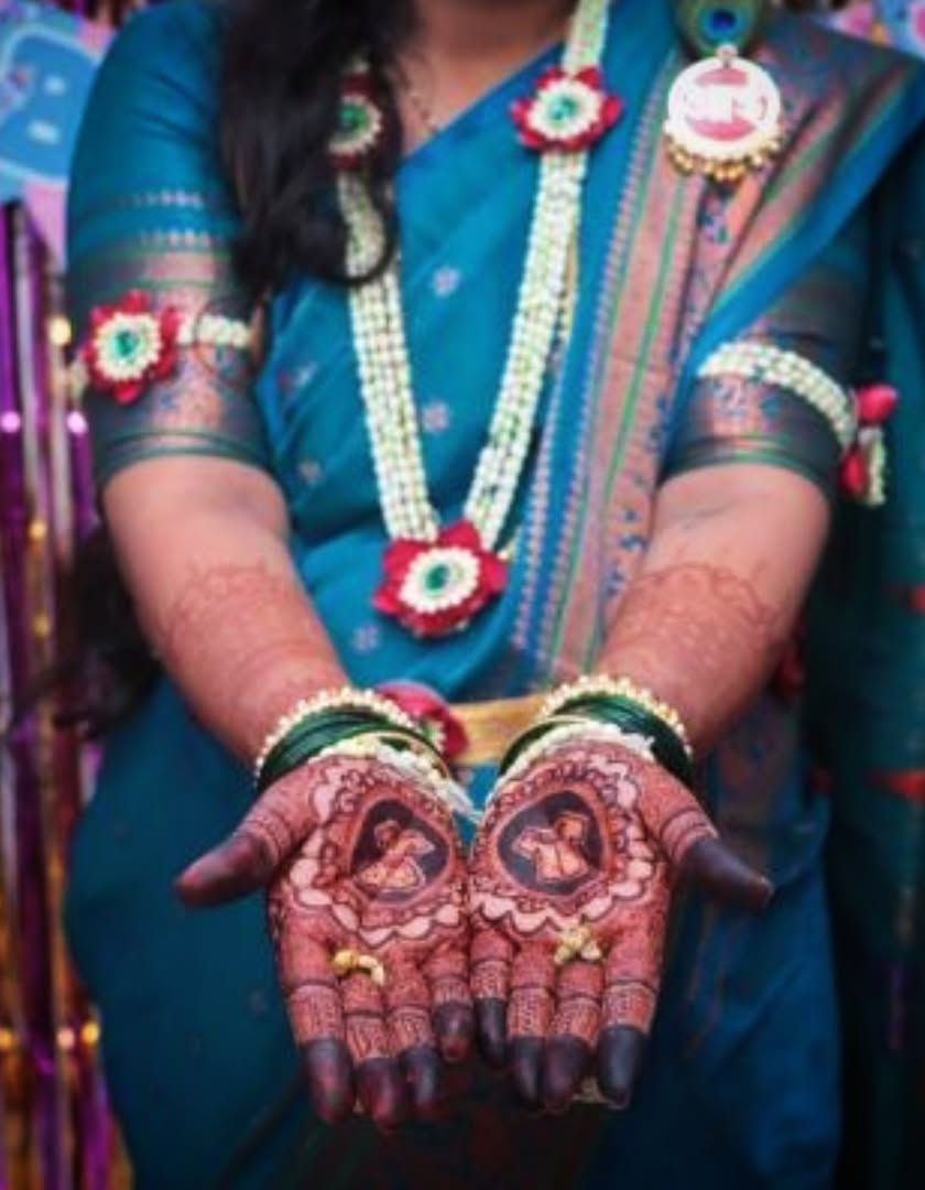 Let's make your mehendi uniquely yours. I specialize in creating portraits from photos and weaving in names, dates, initials, or meaningful symbols like religious figures or personal mantras. This is my favorite way to tell your story through henna.