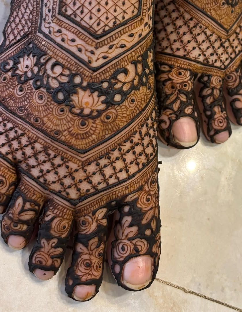Complete your bridal or festive look with beautiful mehendi for your feet. I offer everything from simple strips and ankle bands to full-coverage designs that adorn the entire foot. I ensure the patterns complement your hand mehendi perfectly.