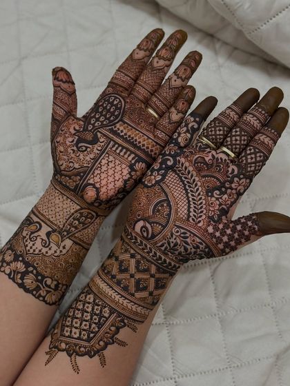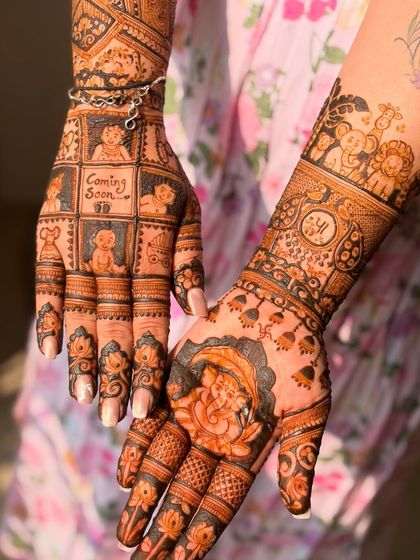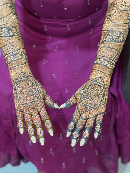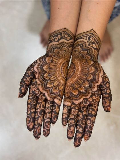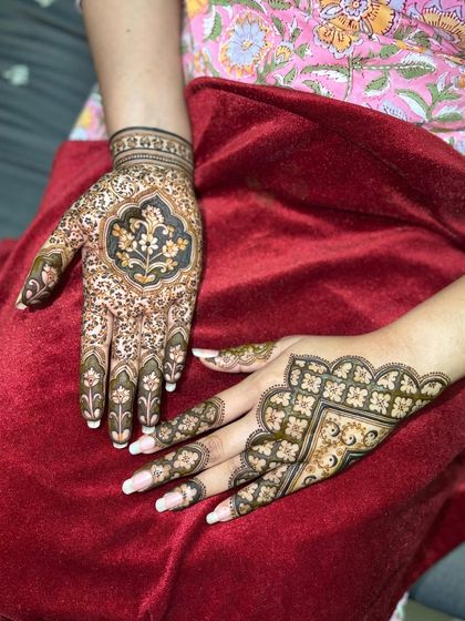 I create custom bridal and event mehendi with your stories, portraits, or special motifs, and also offer mehendi for your family and guests for weddings, engagements, and baby showers.