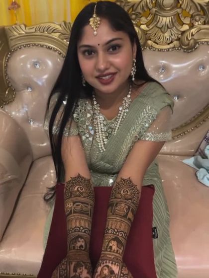 Your bridal mehendi can tell your unique love story. I specialize in creating custom portraits of the bride and groom, along with symbolic scenes like the doli or varmala, making your henna truly one of a kind.