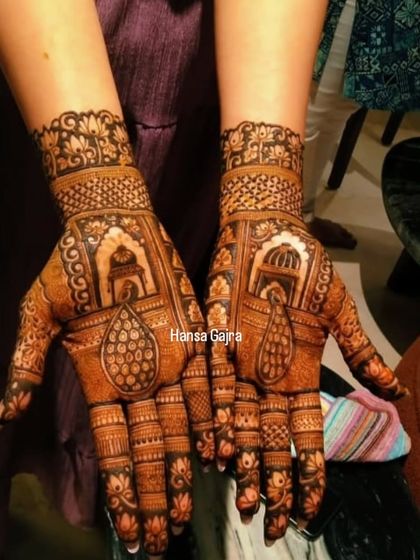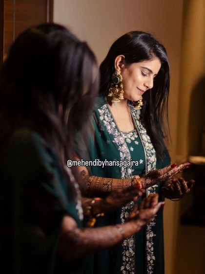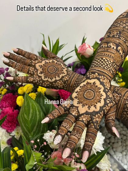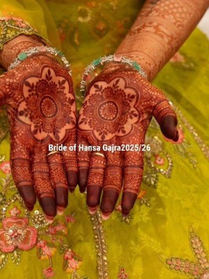 Hi, I’m Hansa. Mehendi isn’t just a design for me, it’s a whole vibe, ya. I love chatting with brides, hearing their stories, and then making something that’s only theirs. Sometimes it’s the mom’s hands, sometimes the whole bride squad - every hand has a story. Honestly, the laughter, the nerves, the whole chaos - I get to be part of it. Bohot shukriya (so grateful) for that.