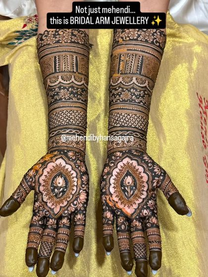 I create bridal mehendi based fully on your choice, including custom designs like portraits or quotes, and use only natural mehendi for a deep stain.