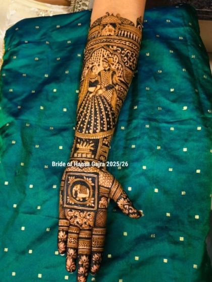 I specialize in personalized bridal mehendi, focusing on figure work and storytelling designs that capture your unique story. Using only natural henna, I create timeless art that reflects your vision, not passing trends.