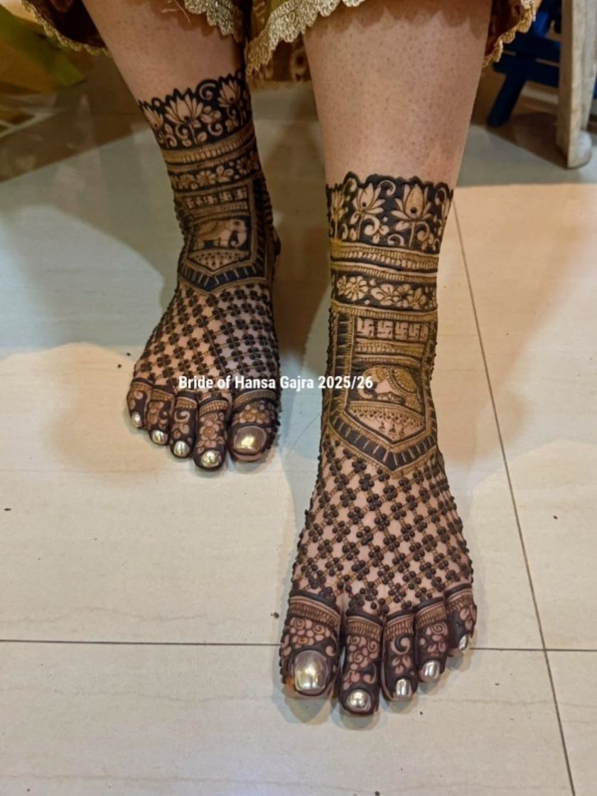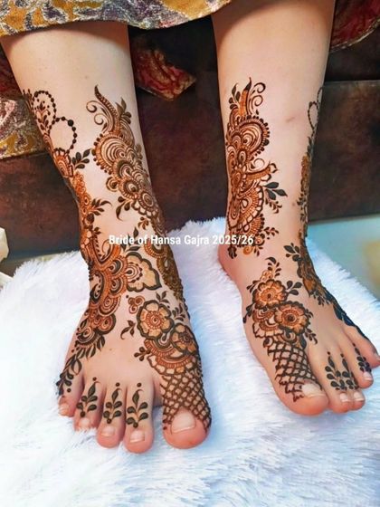 Your bridal look isn't complete without beautiful mehendi on your feet. I design everything from simple, elegant patterns to full-coverage leg mehendi with motifs that match your hands for a cohesive look.